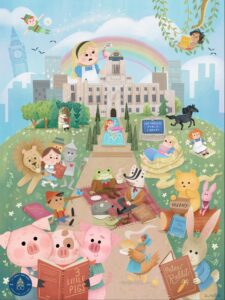This piece is a celebration of the history of children’s literature. I wanted to depict the joy reading can bring with bright and bold characters reading their own stories lying across the lawn of the LA Public Library. There are so many classic tales dating back decades and I wanted to represent all coexisting in one piece. In a world today that is driven by technology, it’s important we keep these books alive for generations to come.